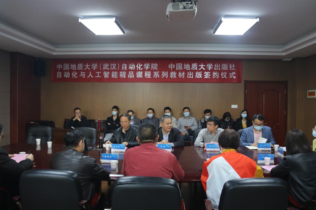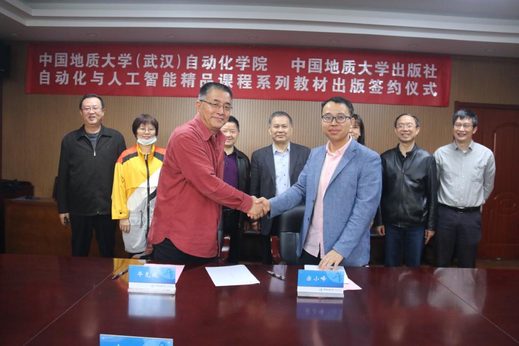 1110日,beat365官网组织建设的自动化与人工智能精品课程系列教材出版签约仪式在信息楼316会议室举行。beat365英国官方网站出版社党委书记兼总编辑李国昌、社长毕克成等领导及相关负责人,beat365英国官方网站教务处副处长王莹,beat365英国官方网站院长吴敏、常务副院长曹卫华、副院长宗小峰,以及教材编撰教师出席了签字仪式。签约仪式由beat365英国官方网站党委书记董浩斌主持。