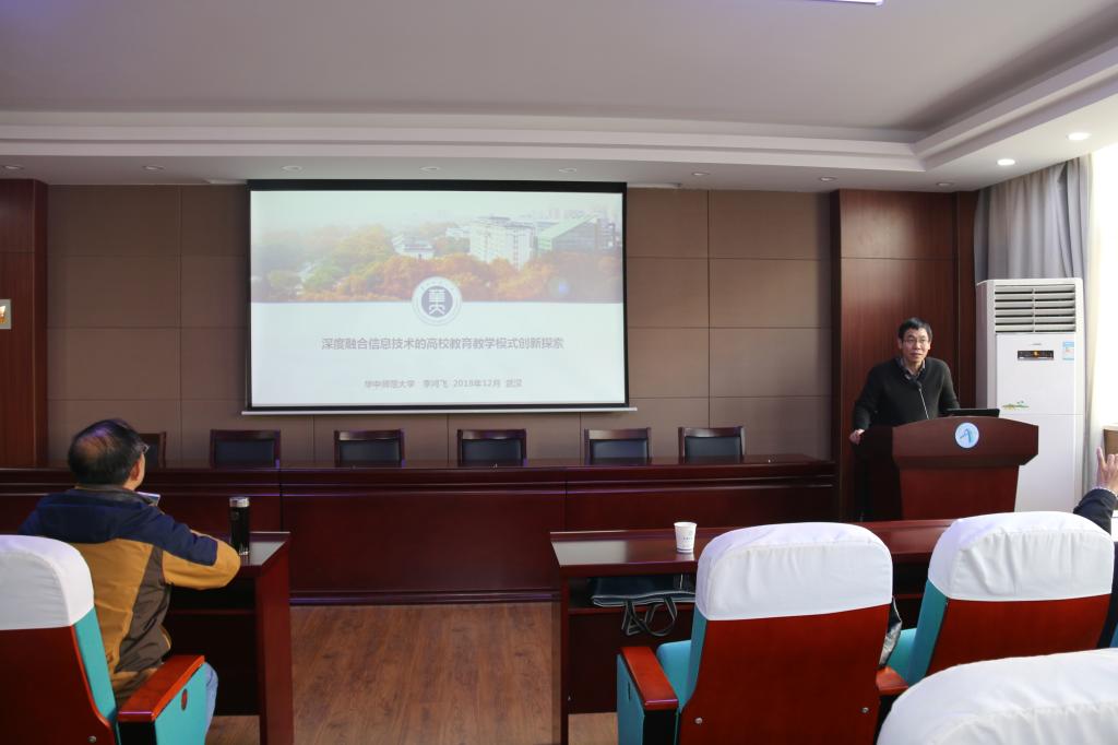 12月12日,华中师范大学李鸿飞教授应邀来beat365官网作了题为《深度融合信息技术的高校教育教学模式创新实践》的教学研究报告。