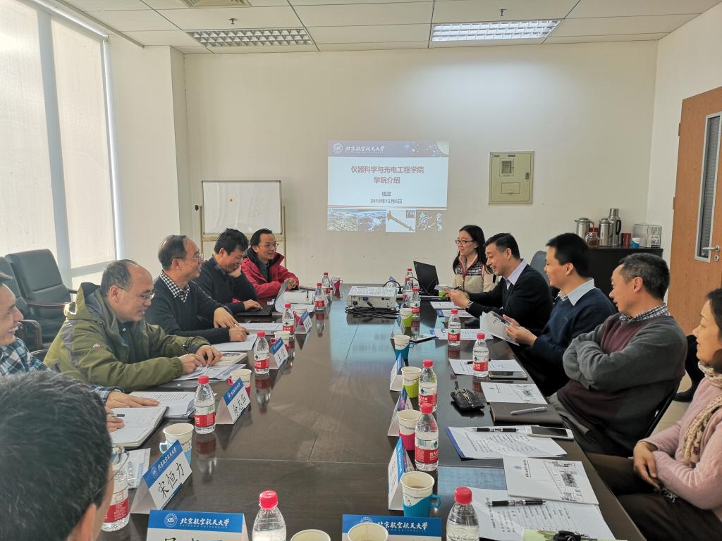 会上,徐立军院长介绍了学院基本情况,钱政副院长详细介绍了测控技术与仪器专业建设情况。据了解,北京航空航天大学仪器学科在最近两次的学科评估中排名第一,荣获“A+”。他们依托航天行业,特色显著,构建了本硕博一体化创新能力和实践培养模式。双方还就学生培养目标与毕业要求、课程体系建设、师资队伍建设等展开深入交流。