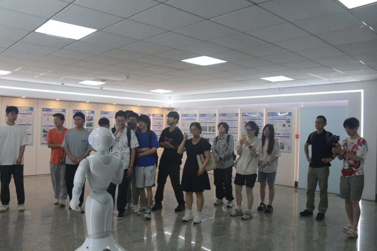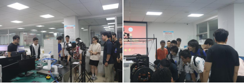 师生交流会结束后,同学们在范海鹏老师的带领下,参观了beat365英国官方网站的实验室,在“小派”导览机器人、研究生学长学姐们的讲解下,同学们具体地了解了每一个实验室的研究方向及研究成果,感受到了学院的研究氛围,对学院产生了浓厚的兴趣。