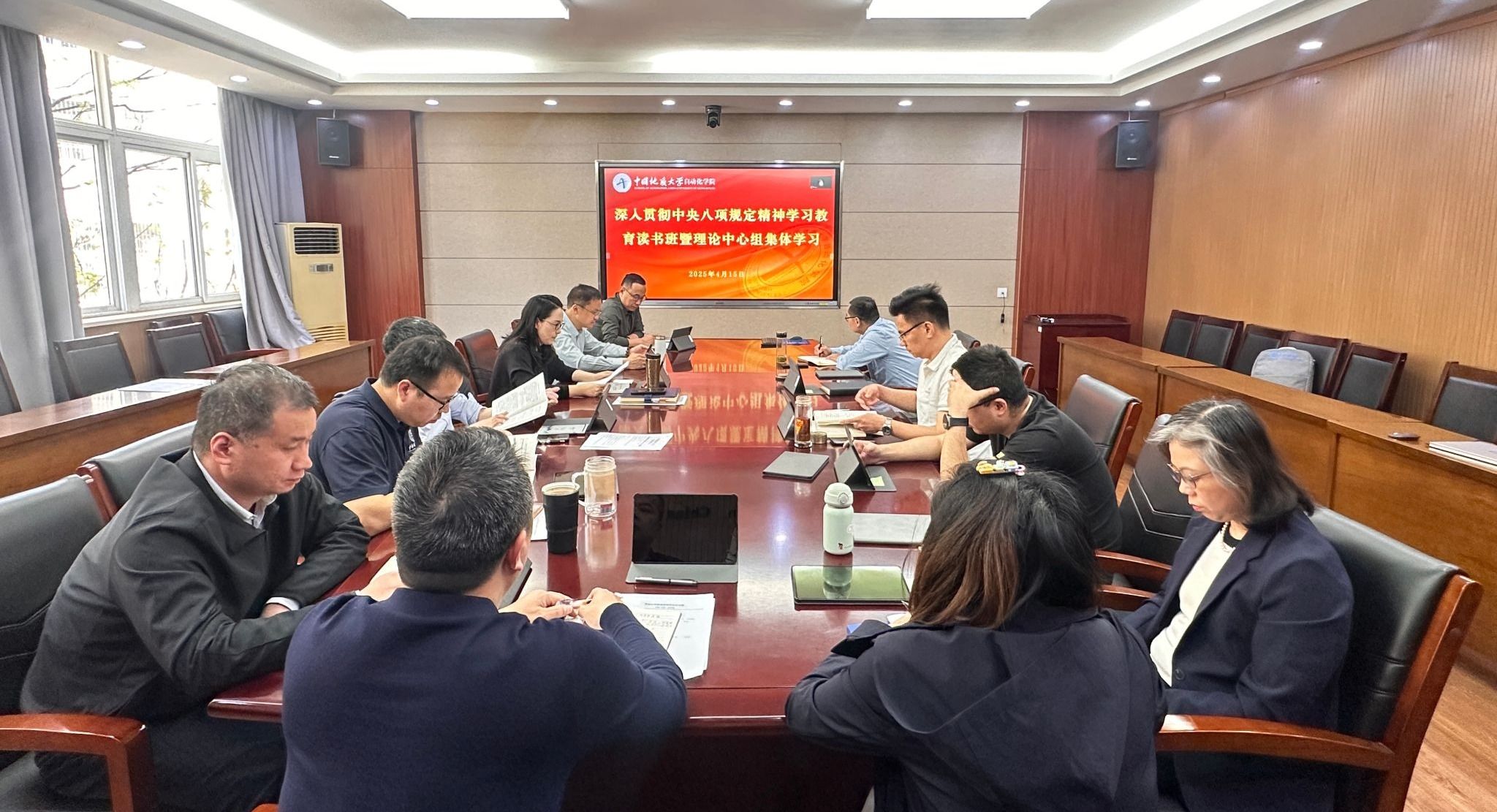 4月15日,院领导班子深入贯彻中央八项规定精神学习教育读书班暨理论学习中心组集体学习在信息楼316会议室举办。集体学习由院党委书记朱荆萨主持。