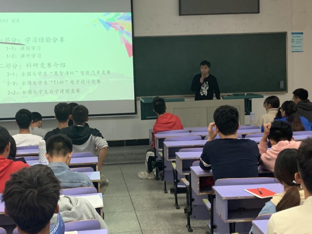 接着,彭劢同学分享了自己的学习和参加竞赛实践的经验,向低年级同学讲述了学习和参加竞赛需要注意的问题。之后,同学们就考试、保研、学生工作等问题向高年级学生进行提问,彭劢同学和宋建阳同学进行了解答。