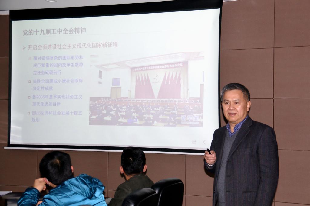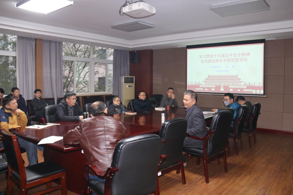 2020年12月7日,院长吴敏以“学习贯彻十九届五中全会精神 加快建设高水平研究型学院”为题,为学院党员干部及学院办公室人员上了一堂生动精彩、发人深省的党课。