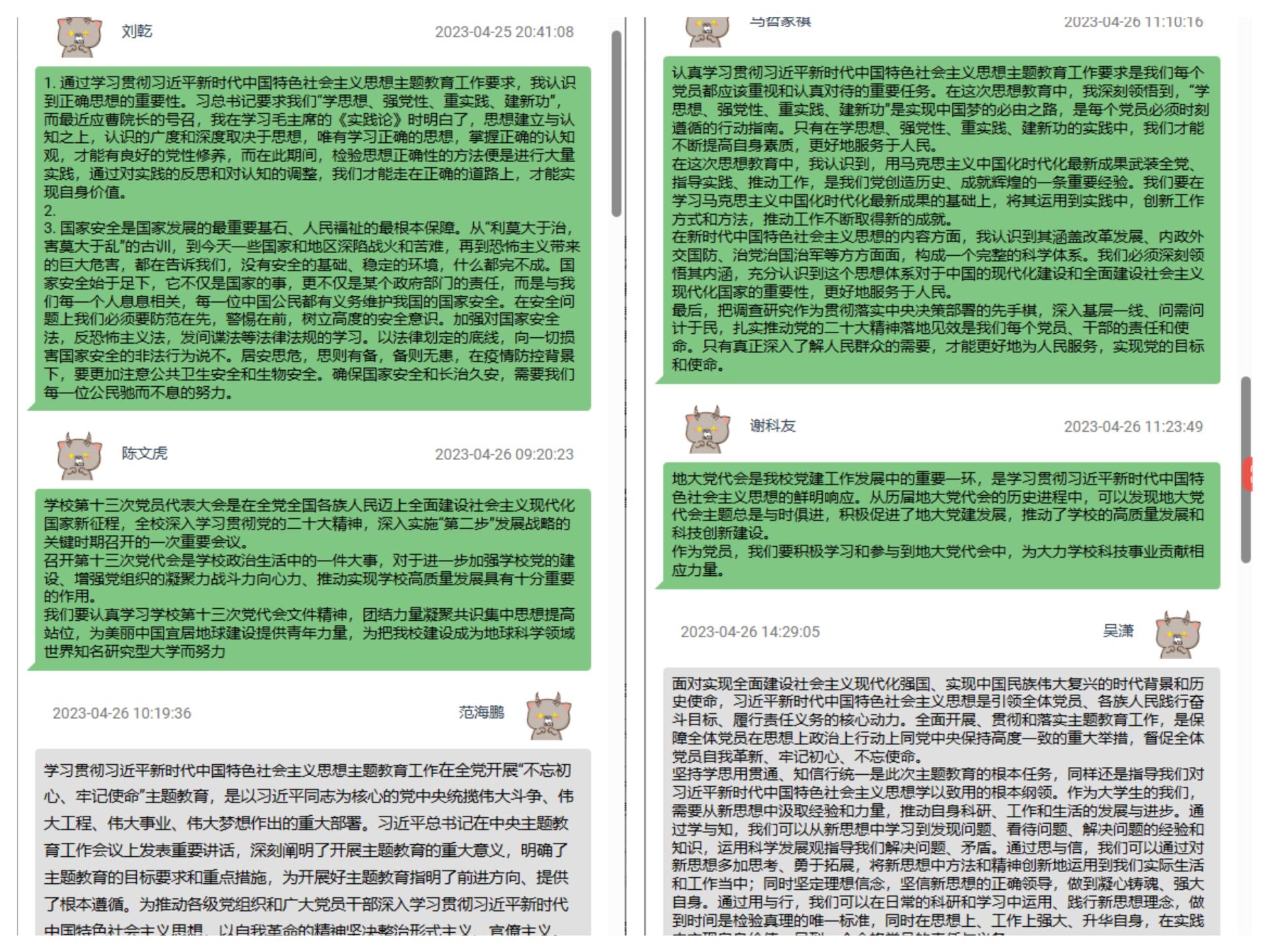 支部成员在“青春向党”智慧党建系统中发表交流心得