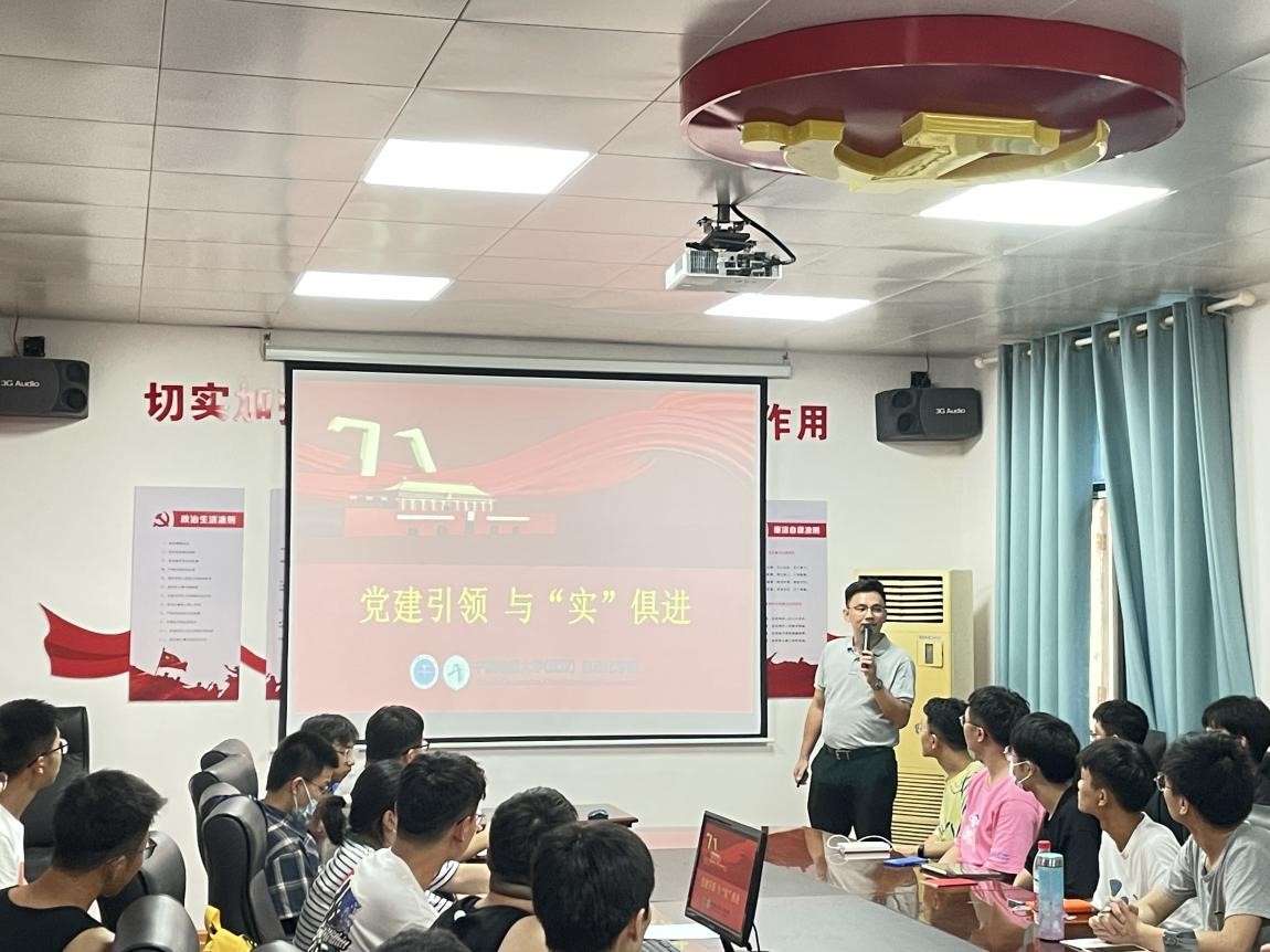 主题党日活动结束后,陈略峰副院长结合正在进行的生产实践实习,为学生党员讲授了题为“党建引领,与‘实’俱进”的党课。讲课内容切合本科生“实践-创新-国际化”的培养目标,教育学生要做到理论密切联系实际、掌握自动化技术与知识在生产过程中的应用,提高分析、设计、研发等工程实践能力,为今后解决实际工程问题奠定基础。随后,带领学生党员简要回顾了香港回归25周年的历史,表达了对祖国繁荣昌盛的美好向往。