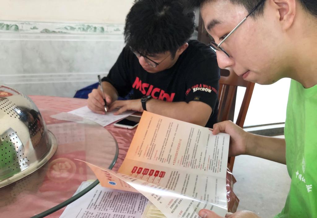 在到达受访家庭后,张奕驰同学和陈聃同学将慰问品赠予资助对象,了解受资助学生的家庭经济状况,宣传国家和我校学生奖励与资助政策,收集学生家长对学校资助工作的意见和建议,并拍摄了照片和视频以作留念。