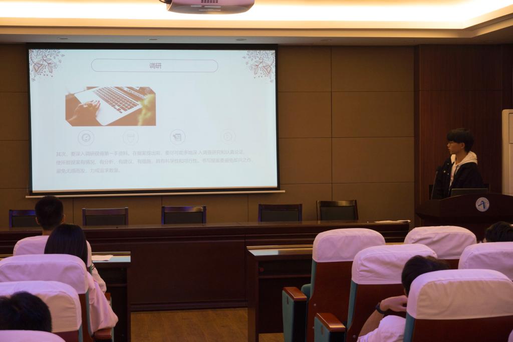 培训由权益服务部部员黄山川同学来讲解如何写出一份优质提案。具体给出如下建议:一是选题,选题要深入,不应只是拘泥于生活中基础设施的不足和改善,更应提出对学校各方面制度或是可以切实维护学生权益的合理化建议;二在调研方面,要深入客观的论证,具有科学性和可行性;在文字表达方面,避免长篇大论,含糊不清,语言要客观公正,避免加入个人感情色彩。