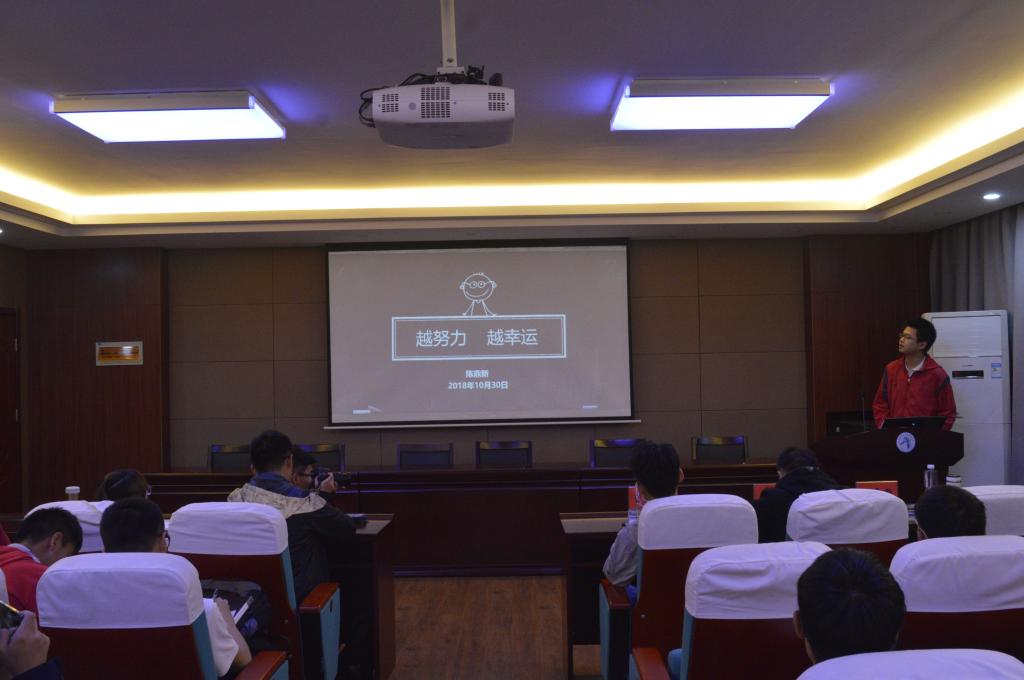 第一位发言的是陈鼎新学长,他首先与新生交流了自己的学习经历与心路历程。陈鼎新学长强调了学习心态的重要性,用诙谐幽默的语言诠释了“越努力越幸运”的含义。接着,陈鼎新学长分享了自己参与学生会与社团活动的收获,直观形象地阐释了学生工作与科研的关系以及合理规划时间的重要性。最后,陈鼎新学长分享了自己保研的经历,不断强调“提前准备,不打无准备之仗”,为新生们准备了八条建议,鼓励同学们抓住机会,根据未来发展方向努力争取保研。