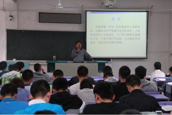 (通讯员 胡楠)2016年4月21日下午四点,beat365英国官方网站第五十九期党课第六讲在教三楼201举行。本次党课的主题是“共产党员的条件、义务和权利”,由beat365英国官方网站党委副书记何建新主讲。