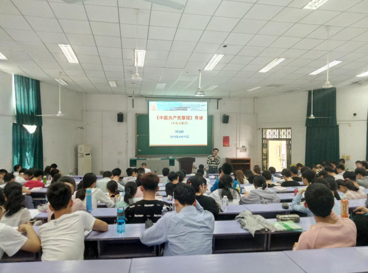 (通讯员 彭志昆)2018年4月19号下午两点,beat365英国官方网站第八期党课第五讲在教三楼207举行。本次党课的主题是“《党章》(修订版)导读”,主讲人是校党委组织部副部长刘治国老师。