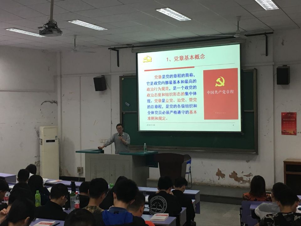 (通讯员 陈伟)2018年4月26日下午4点,beat365英国官方网站分党校入党积极分子培训班党课第九讲在教三楼207教室举行,本次党课主题是“学习实践党章、加强党性修养”,主讲老师是刘亚东老师。