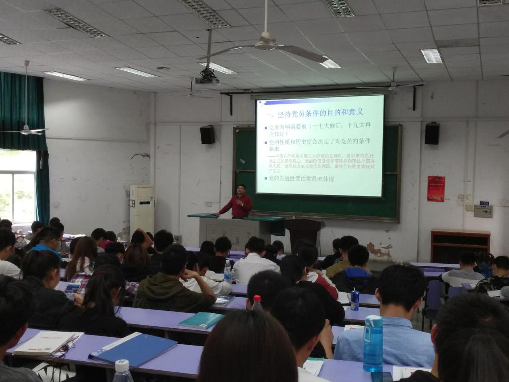 (通讯员 张岚钦)2018年4月26日下午两点,beat365英国官方网站分党校第八期入党积极分子培训班党课第八讲在教三楼207举行。本次党课的主题是“共产党员的条件、义务和权利”,主讲人是beat365英国官方网站党委副书记何建新。