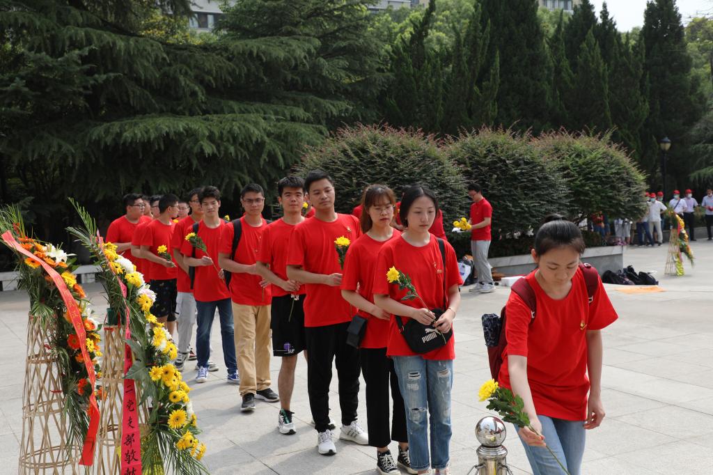 为了缅怀革命先烈,全体党员默哀一分钟,并向革命先烈敬献花束,鞠躬敬礼。