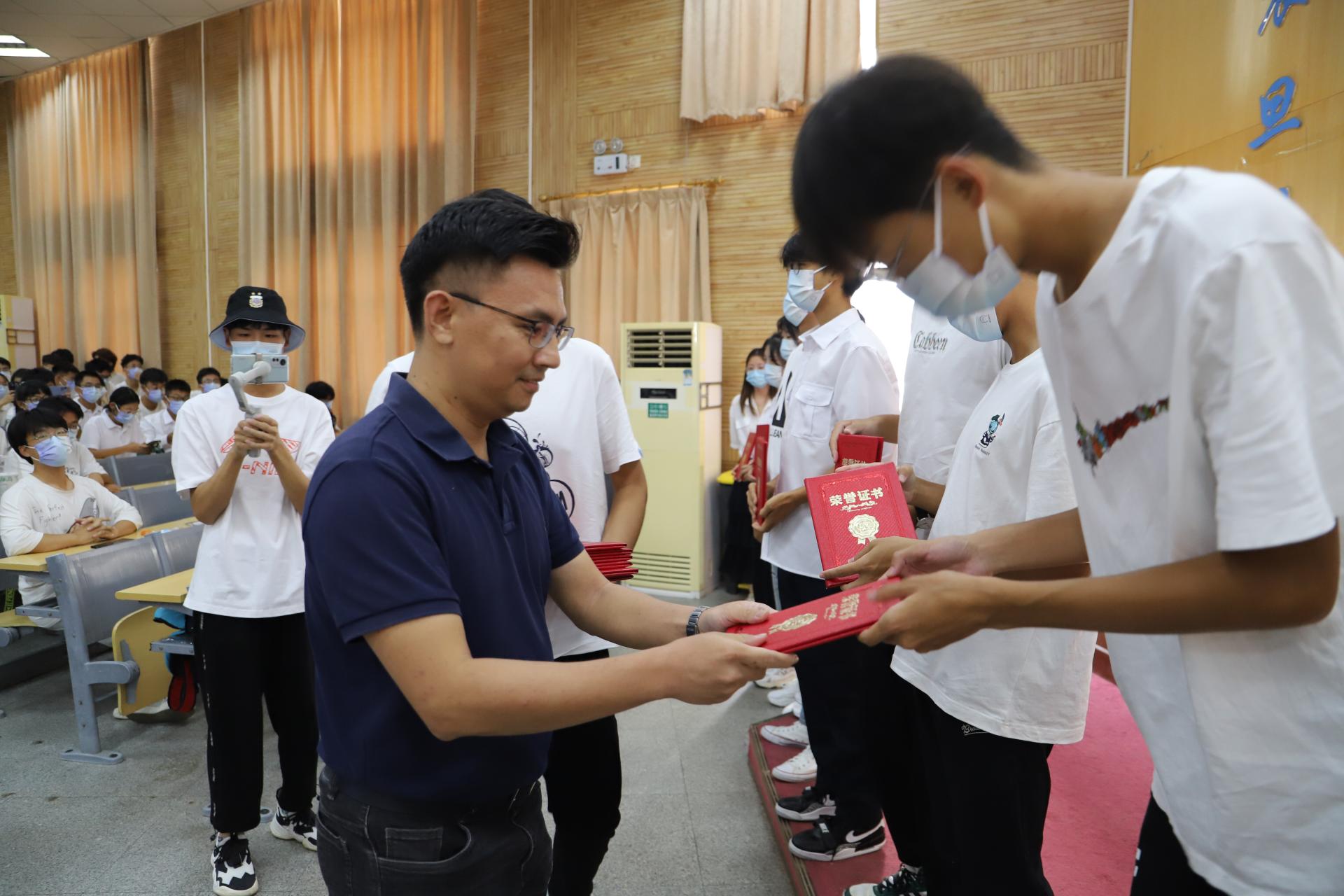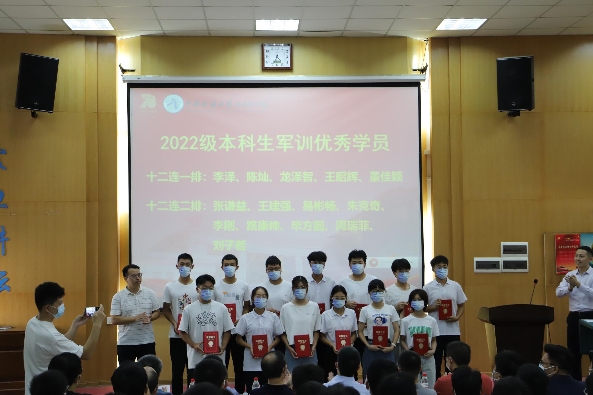 典礼上,学院副院长陈鑫教授宣读了2022级本科生军训优秀集体及个人的表彰决定。学院副院长熊永华、宗小峰、陈略峰教授为获奖集体和个人颁发荣誉证书。