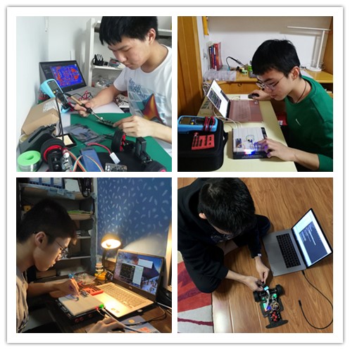 面对学生居家无仪器设备、无实验材料、无人指导的“三无”困境,学院迅速采取行动,各竞赛负责教师通过多方调研,积极争取训练设备。经过团队的反复论证,在多家在线训练平台中,最终选择了一款融合了十二种教学仪器设备,能提供多样化的教学和实验手段,支持上百个基础实验和综合实验训练项目的“口袋式”竞赛训练设备。在师生的积极配合下,100多套设备和实验器材送达学生手中,家庭“电子实验室”由此诞生,竞赛培训工作顺利启动。
