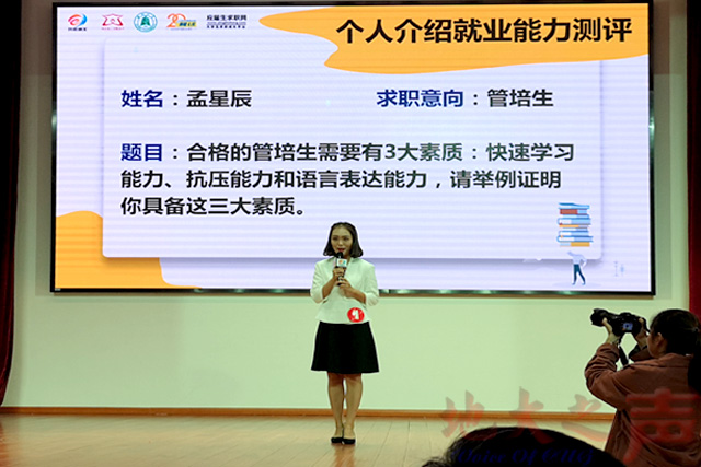 来自各高校的12名大学生,从1万余名初赛选手中脱颖而出,进入总决赛。比赛分个人介绍和就业能力测评、争锋相对、即兴演讲三个环节,考察每位参赛者的就业求职综合能力。“湖北省有150万在校大学生,请策划一档与“我选湖北”计划相关的电视节目,让更多大学生爱上湖北留在湖北。”“大学生找工作选择对口行业还是热门行业?”“今年是改革开放40周年,谈谈大学生如何更好的完成历史使命?”一个个犀利的问题都成为选手们台上的考题,主办方结合参赛者的求职意向、时事新闻、热点话题,考核参赛者语言表达、逻辑思维、协调沟通及应变能力。