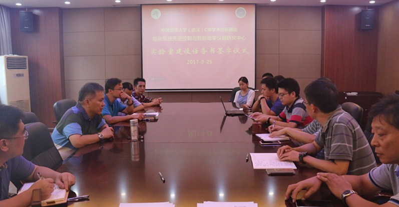 9月25日下午,我校C类学术创新基地“复杂系统先进控制与智能地学仪器研究中心”(“研究中心”)第二批实验室建设任务书签字仪式在beat365官网会议室举行。研究中心主任吴敏教授、获批的四个实验室建设项目负责人董浩斌教授、金星教授、李勇波副教授、熊永华教授及项目组成员参加了签字仪式。签字仪式由副院长曹卫华主持。