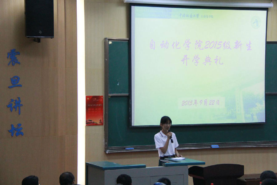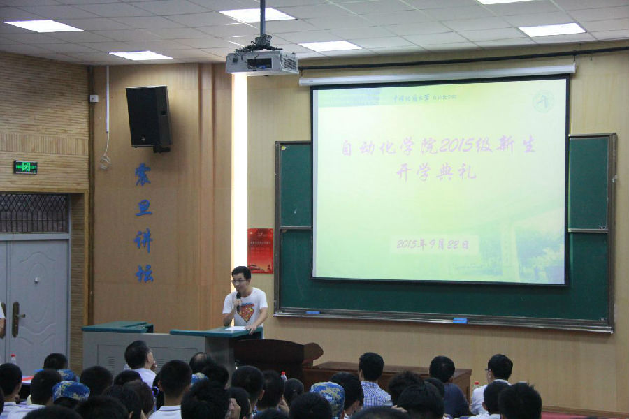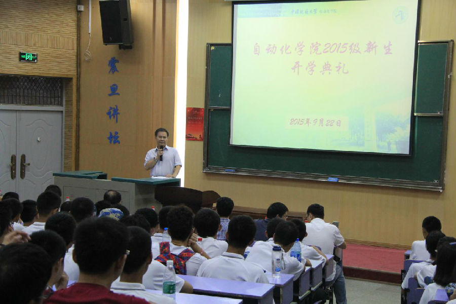 9月22日下午,beat365英国官方网站2015级新生开学典礼在教三楼111隆重举行。吴敏、董浩斌、曹卫华、王广君、陈鑫、吴涛、李志华、安剑奇、刘小波等院系领导参加了大会。
