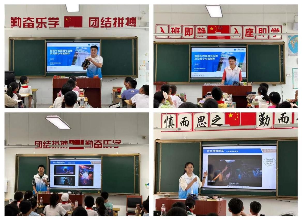 授牌仪式结束后,刘振焘老师带来《走进智能机器人的世界》专题科普讲座。刘老师从生活中的智能化及其入手,深入浅出的为孩子们介绍了各类不同智能程度的机器人,在讲解最后,伴随着机器人的舞动,孩子们发出阵阵欢呼声,将课堂推向了高潮。同时“初光”青年志愿服务团队成员同步为六年级的学生们带来“玩转智能车”的科普实践活动。通过动手制作智能小车,让学生们在动手实践中体验科技的魅力。