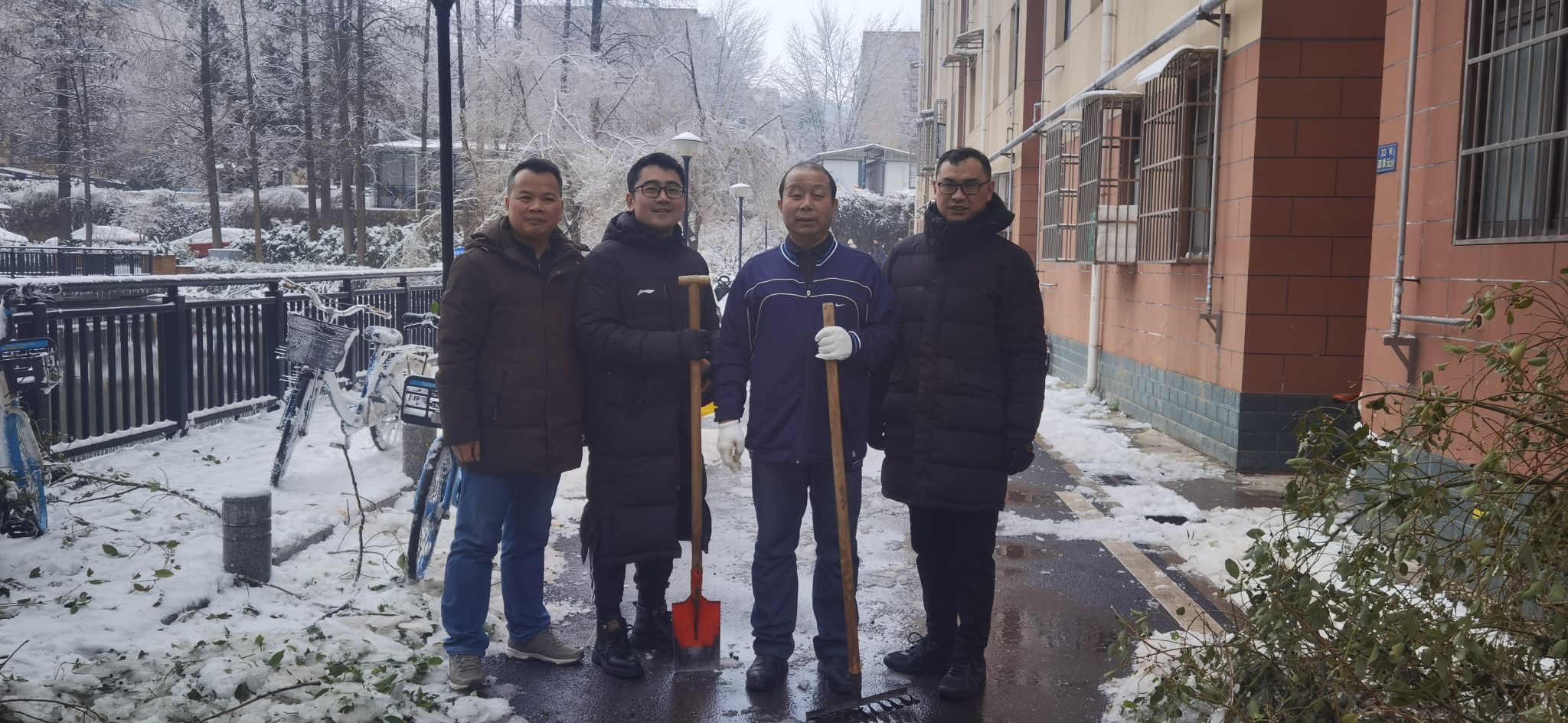2月5日,受雨雪冰冻灾害天气影响,学校吹响“奋战冰雪”集结号,全力开展除冰清障应急处置工作。beat365英国官方网站四名教工党员积极响应,参与到扫雪除冰工作中。