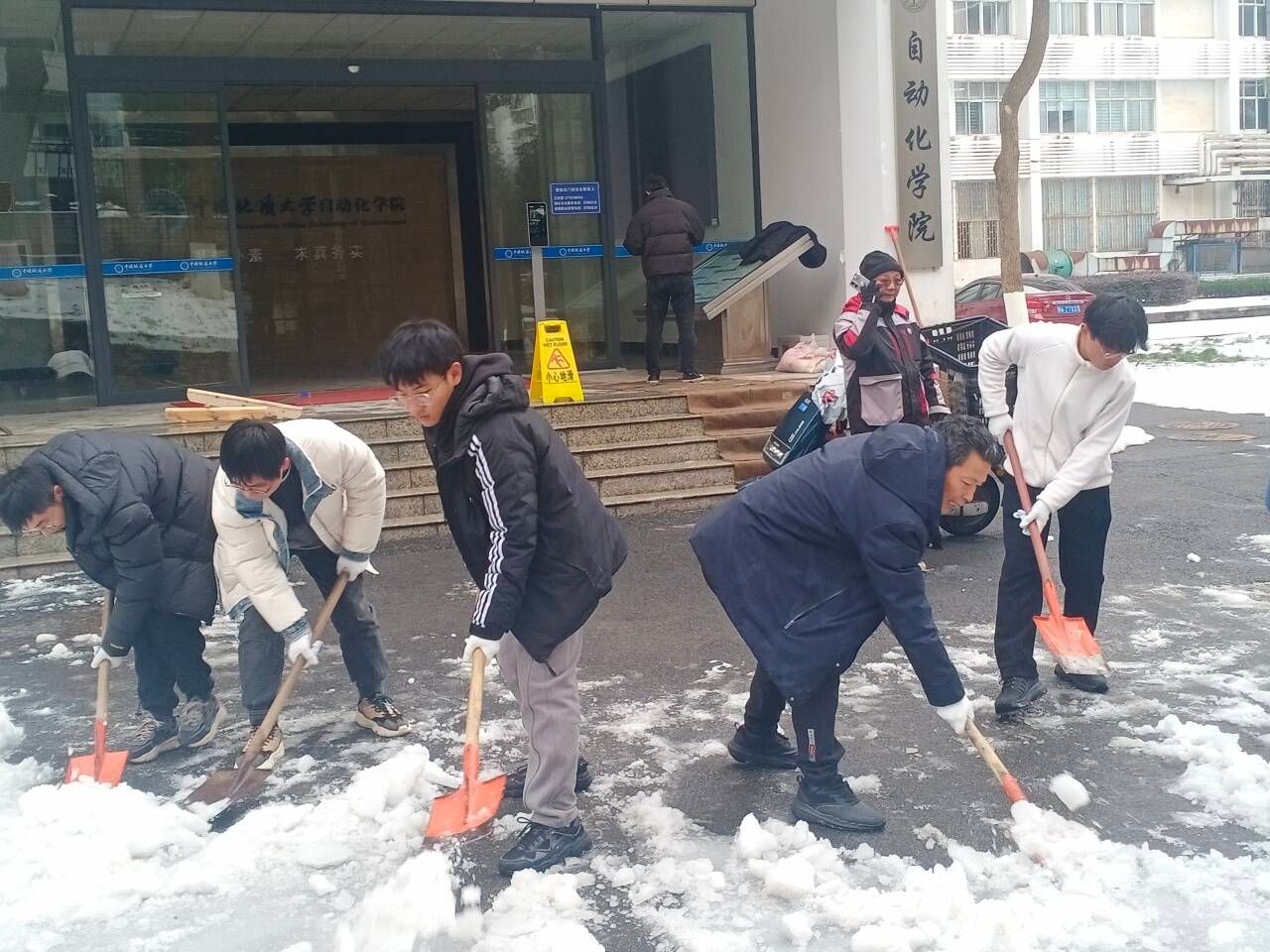 2月21日晚以来,武汉再度遭受低温雨雪冰冻天气,为切实做好恶劣天气应急处置工作,全力保障春季学期顺利开学,学院高度重视,积极组建师生党员先锋队,50余名师生党员第一时间报名,2月22日、25日,学院领导带头,师生党员、志愿者迅速行动,投入到扫雪除冰活动中,全力以赴打好除雪保畅攻坚战,护航师生顺利开启新学期。