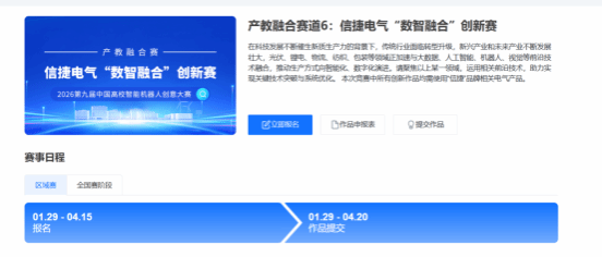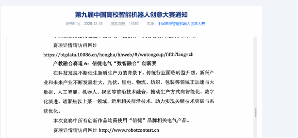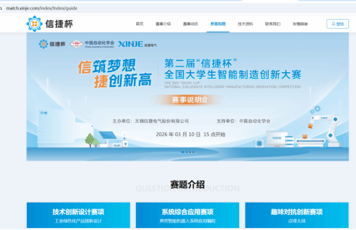 “信捷杯”技术创新设计赛项同为“中国高校智能机器人创意大赛”产教融合赛道6。