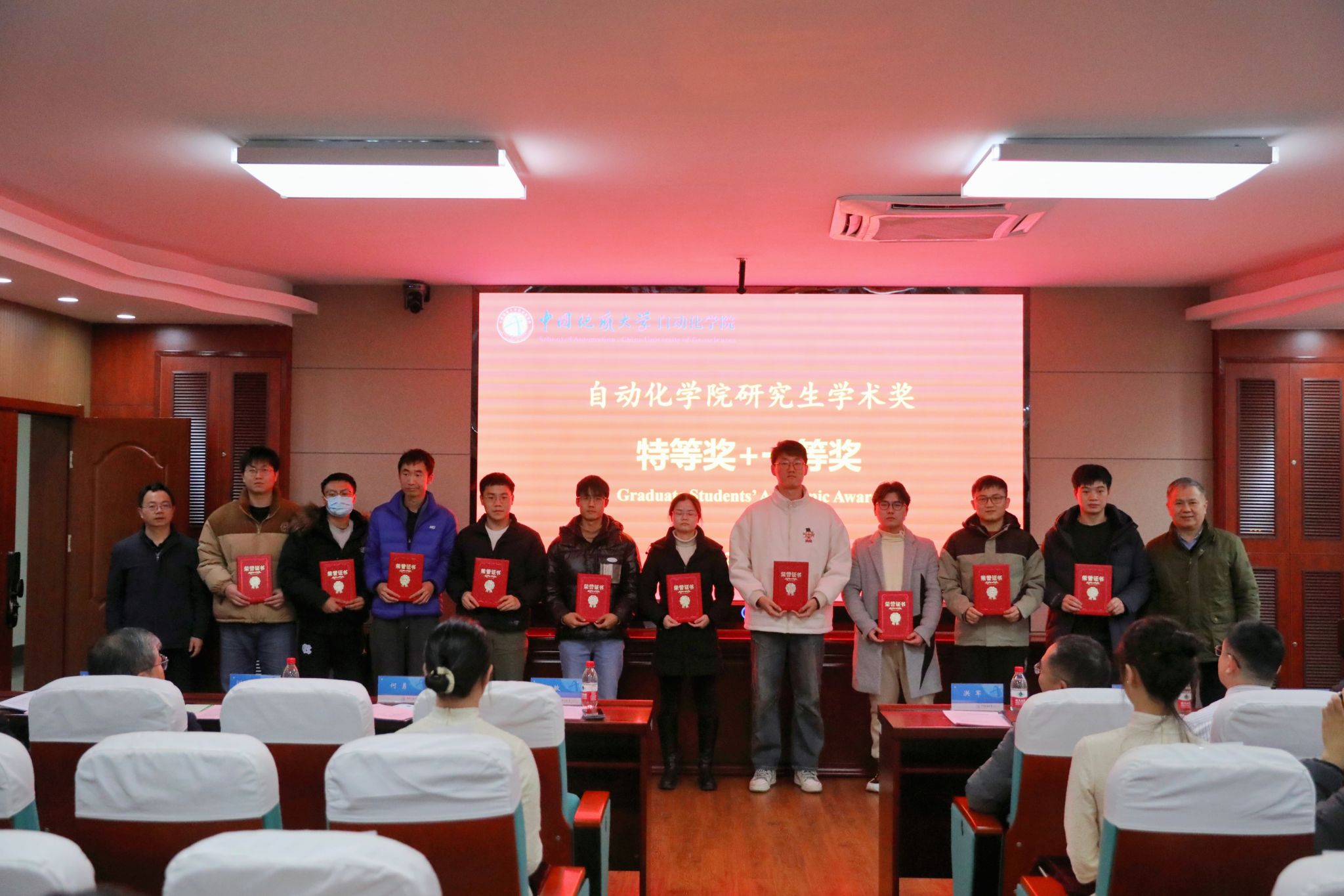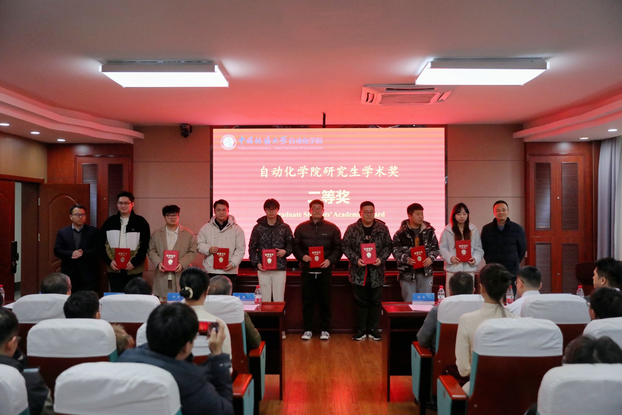 随后,副院长熊永华教授宣读了《关于表彰第九届研究生科技论文报告会优秀论文奖的决定》和《关于表彰2023年研究生学术奖的决定》。与会领导、嘉宾先后上台为获奖研究生代表进行颁奖。