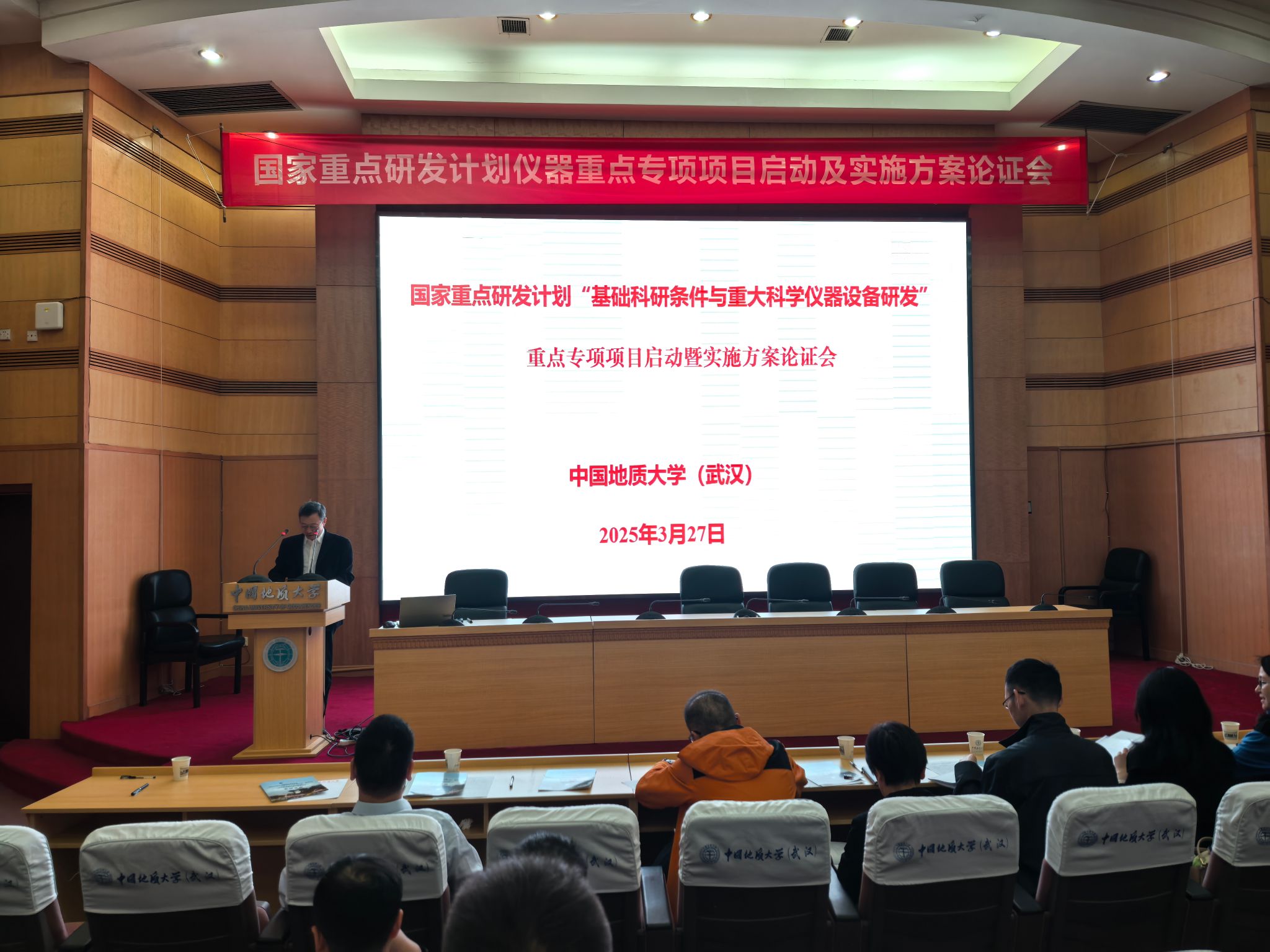 2025年3月27日,由beat365英国官方网站吕涛教授主持的国家重点研发计划“基础科研条件与重大科学仪器设备研发”重点专项“固体样品直接进样器”项目启动暨实施方案论证会在迎宾楼报告厅召开。北京控制工程研究所刘淑芬研究员、上海市计量测试技术研究院李源教授级高级工程师、华中科技大学秦应雄教授、中国科学院西安光学精密机械研究所杨直副研究员、中国地质调查局武汉地质调查中心杨红梅教授级高级工程师来我校参与交流指导。我校副校长章军锋,科学发展院院长严德天,beat365英国官方网站党委书记朱荆萨,以及各课题承担单位参研人员参加会议,会议由严德天院长主持。