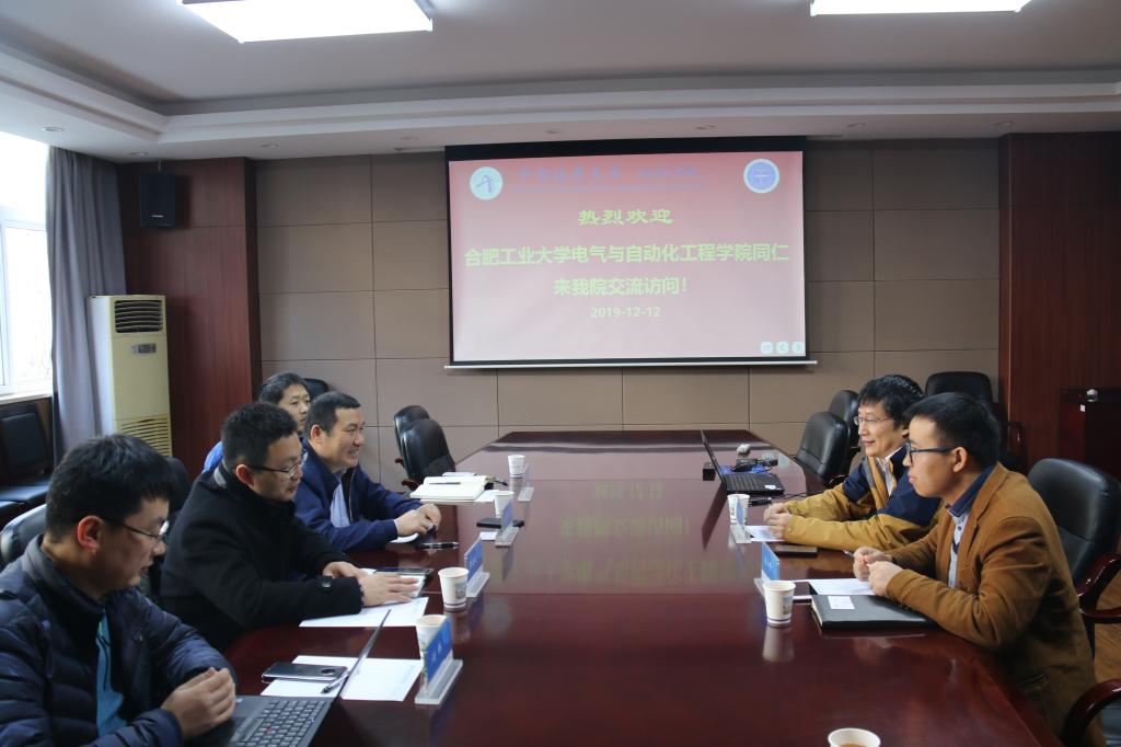 2019年12月12日,合肥工业大学电气与自动化工程学院副院长唐昊教授一行4人来beat365官网访问交流。beat365英国官方网站常务副院长曹卫华、副院长宗小峰接待了唐昊一行。