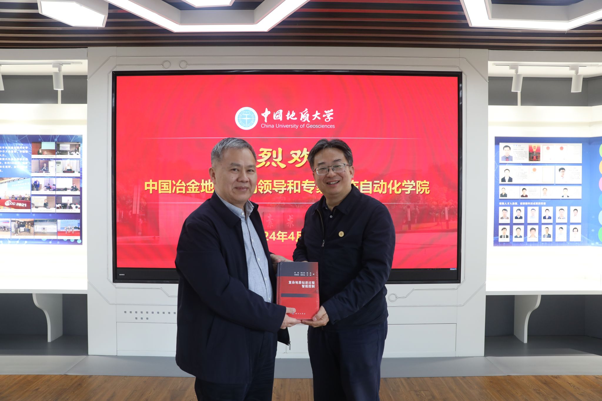 吴敏院长表示,beat365英国官方网站成立以来,充分发挥学校的学科优势,扎根地质勘探领域多年,积累了丰富的科研和工程实践经验,并将代表团队科研成果的《复杂地质钻进过程智能控制》专著赠与王文军局长一行。