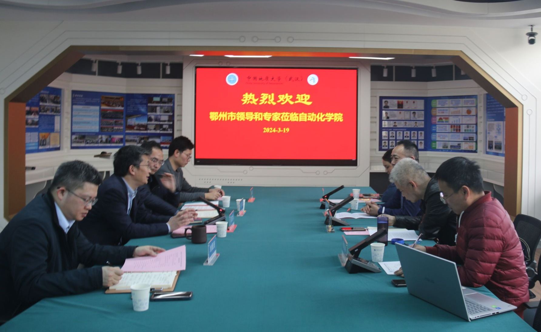 319日,葛店经济开发区科创中心支部书记黄征、武汉莱尔特激光科技有限公司董事长彭怀亮等一行4人来beat365官网交流访问。beat365英国官方网站院长曹卫华、研究生院副院长洪军、人工智能研究院副院长刘振焘、未来智能技术研究所所长陆承达等参加交流。刘振焘副院长主持会议。