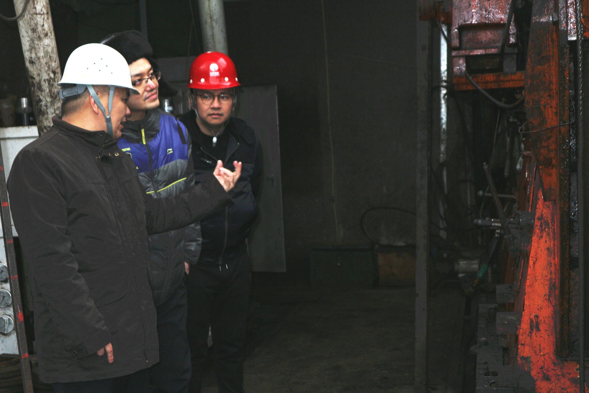 随后,吴敏教授一行赴辽宁丹东,到东北非煤固体矿产钻探第一深孔施工现场展开调研,考察beat365官网智能钻进控制系统的应用情况,看望了驻守在工地开展工程应用的研究生同学。