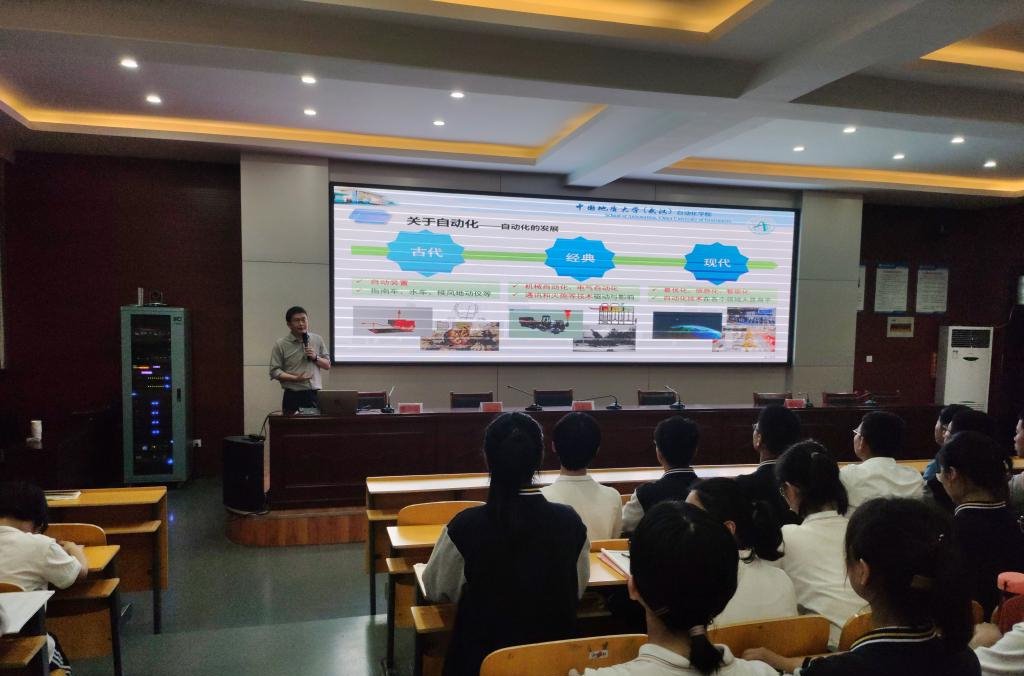 曹卫华教授的科普报告题为《走进自动化,开启智能+》。他结合生活中常见的自动化装置、设备,由浅入深介绍了自动化的发展历史,人工智能驱动的自动化发展趋势,国家发展战略对自动化和人工智能的需求,以及beat365英国官方网站在自动化和人工智能领域的科研和应用实践。鼓励学生们投身到自动化和人工智能领域,立志为国家建设作出贡献。曹卫华教授幽默睿智、旁征博引的演讲,吸引了在场的每一位同学。丰富的自动化知识,腾飞的自动化科研事业,可喜的自动化科研成果,奋进的自动化科研人精神……让淮中学子对自动化、智能化知识有了深刻的认识,并极大地激发了同学们对科学的热情和对自动化研究事业的向往。