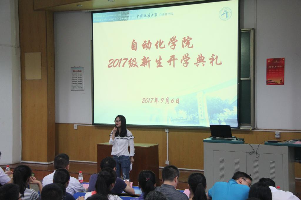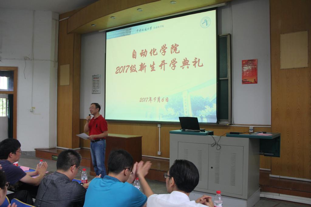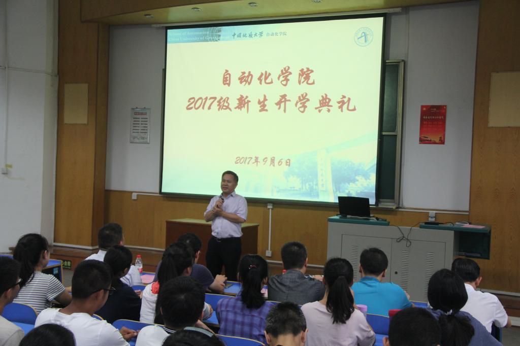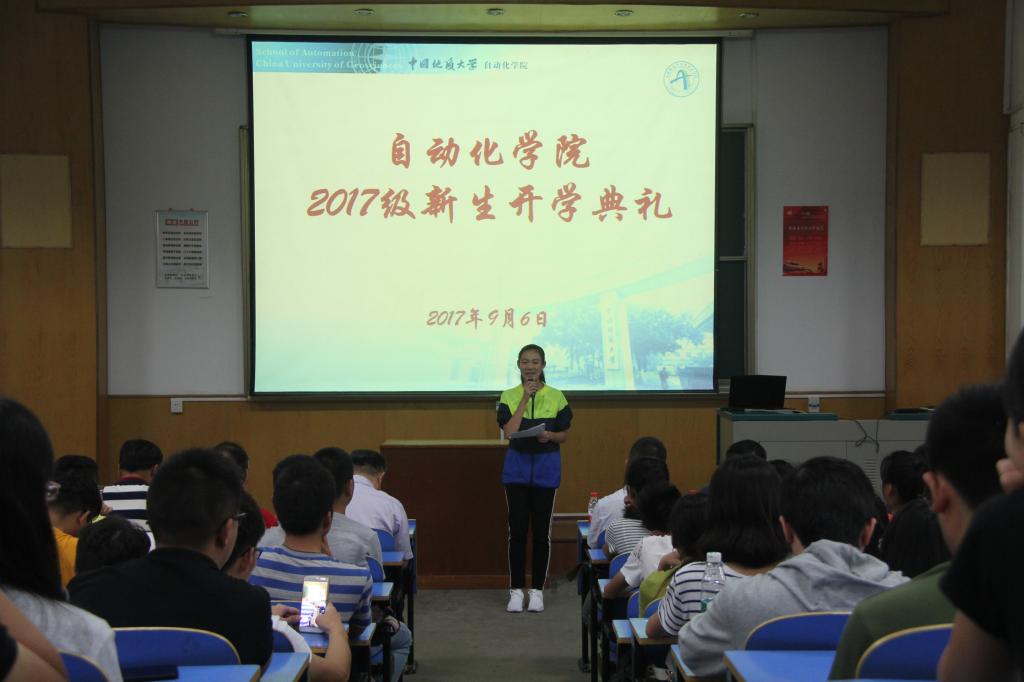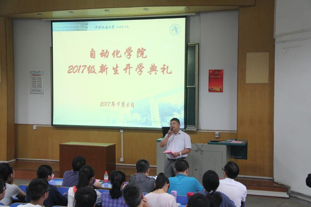 (通讯员 任艺)一年一度秋风劲,八方学子来相聚。9月6日上午,beat365英国官方网站2017级新生开学典礼在教一楼二阶隆重举行。院长吴敏教授,院党委书记董浩斌教授,副院长曹卫华、金星、王广君、陈鑫教授,自动化系熊永华、刘峰、宗小峰教授,测控系李志华副教授、实验中心副主任刘小波老师以及教师代表等出席典礼。beat365英国官方网站2017级全体本科生、研究生参加了开学典礼。典礼由院党委副书记何建新主持。