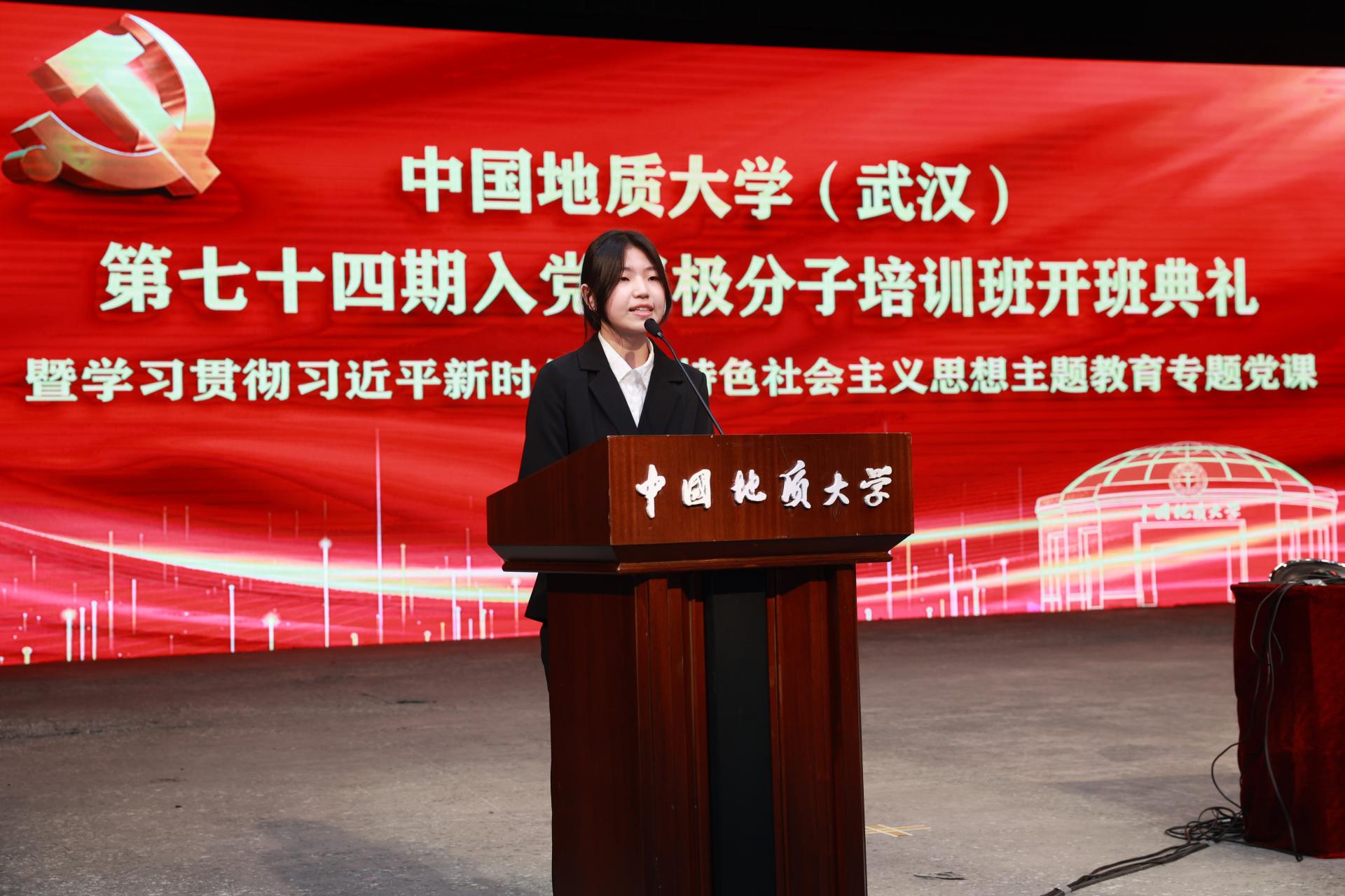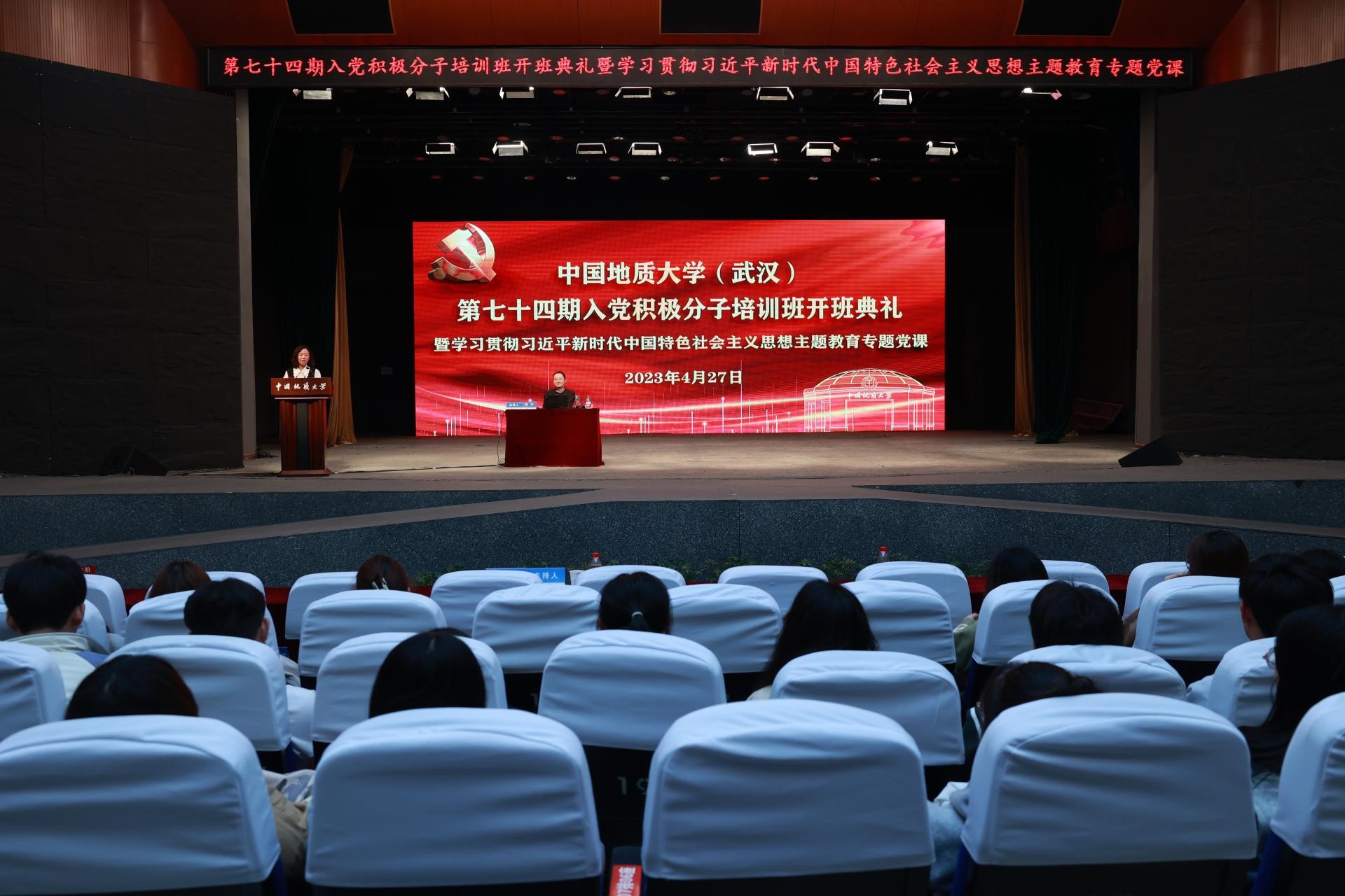 在学校上下深入开展学习贯彻习近平新时代中国特色社会主义思想主题教育之际,为切实提高入党积极分子的理论水平,引导广大青年师生坚定理想信念、践行报国之志,4月27日,beat365英国官方网站(武汉)第七十四期入党积极分子培训班开班典礼暨学习贯彻习近平新时代中国特色社会主义思想主题教育专题党课在弘毅堂举行。