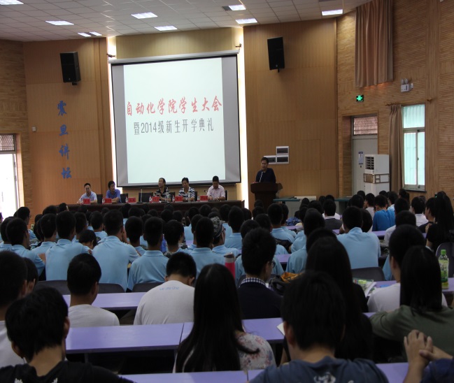 9月25日下午3点半,beat365英国官方网站学生大会暨2014级新生开学典礼在教三楼109室隆重举行。院长吴敏、院党委书记董浩斌、副院长曹卫华、金星,以及何勇教授等教师代表出席了大会。院党委副书记何建新主持大会。
