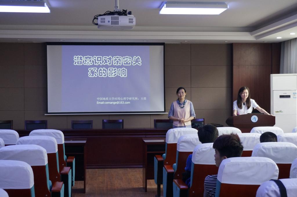 王老师以“你是否曾经喜欢过或者正在喜欢某个人?”这个问题引出讲座主题,并从“什么是潜意识、过去对我们的影响、恋母情结对两性关系的影响、我们在恋爱时会发生什么事、我为什么会选上你”这五个方面来分别讲述;用生活中的实例告诉大家潜意识的存在,激起同学们极大的兴趣。在讲座过程中,王老师不断引用国内外真实案例讲述童年时期的经历对今后发展的影响,并着重介绍恋母情结和恋父情结对今后发展亲密关系的影响;用弗洛伊德的理论为大家解释了在恋爱关系中男女双方出现的不可理喻行为以及喜欢上对方的原因,同学们深受启发。讲座后同学们积极提问,王老师均一一解答并给出合理化建议。