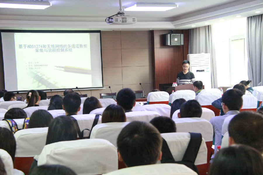 本次报告会共有14名研究生报名参加,内容涉及智能通讯、软件开发、地学仪器等。他们从报告选题、理论价值、实际运用、研究进展等角度介绍了自己的研究工作,并回答了评委的提问。最后,经评委评定,郭培培的论文《海洋地磁场矢量测量仪总场测量单元设计》获得一等奖。