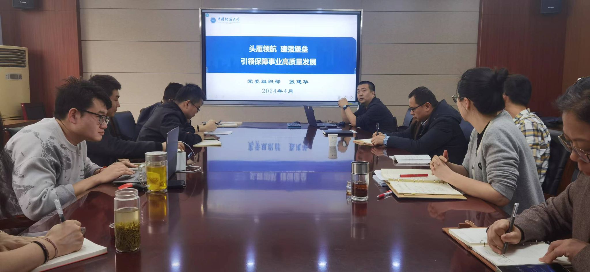 张部长以“头雁领航,建强堡垒,引领保障事业高质量发展”为主题,向与会人员介绍了学校基层党建的整体情况,明确了教师党支部建设的工作遵循和具体要求,强调要通过“两项目标,抓好三支队伍,推进四级联动,强化五个聚焦,落地五通融合、对标‘七个有力’”,找到支部建设的发展方向。此外,他围绕着学校及学院这些年取得的党建成果,深入浅出为大家分享了各式各样的党建活动及多年宝贵的工作经验,提升了与会人员对于教师党支部委员和党支部书记的工作职责认识。