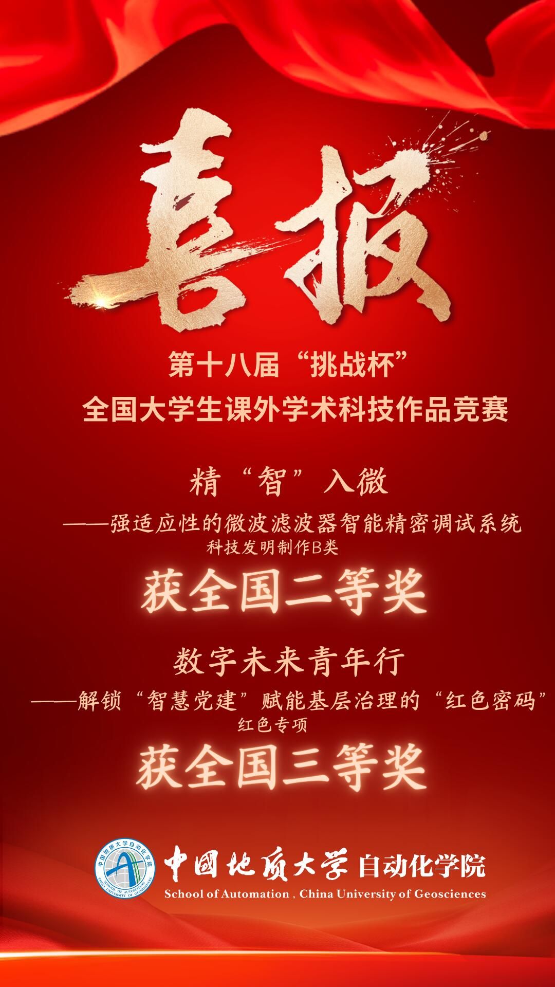 本次大赛,beat365英国官方网站报送的2件参赛作品均为首次参赛,且顺利挺进国赛,分别斩获主体赛全国二等奖,红色专项活动全国三等奖,取得了学院在“挑战杯”历史上的最好成绩!