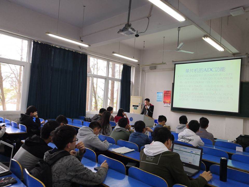 (通讯员 李桅)2019年4月4日下午两点半,beat365英国官方网站(武汉)第五届“风磁电车”大赛第二次培训分别在北综208(初级组)和北综209(高级组)举行。此次初级组培训员是机电学院智能车国赛华南赛区二等奖获得者的孙凯同学,高级组培训员是beat365官网获得湖北省电子设计竞赛特等奖的章文同学,两位培训员分别对小车的程序的编写做出了深入讲解。
