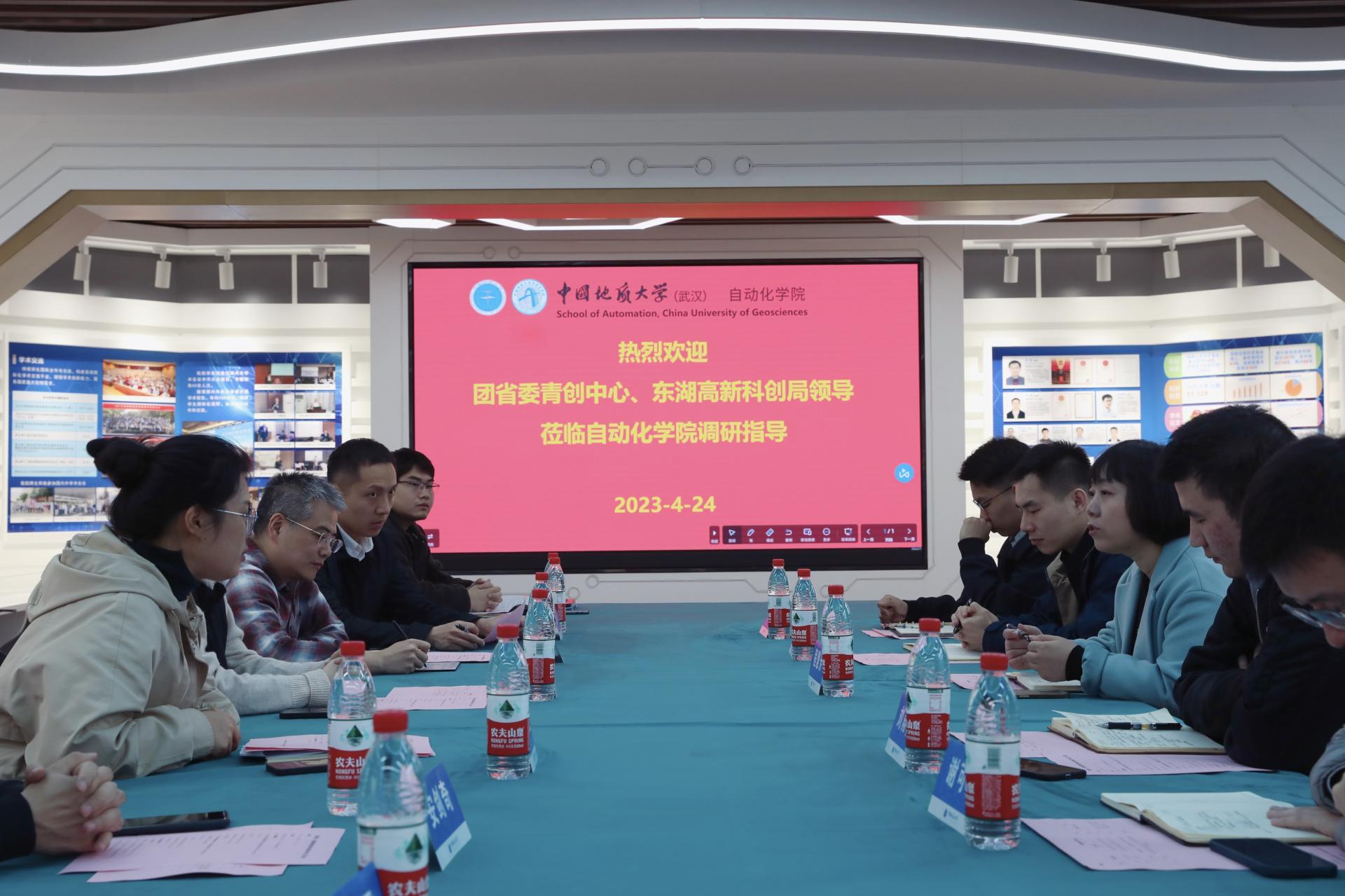 4月24日上午,共青团湖北省委青年创业就业促进中心程慧芳主任、武汉东湖新技术开发区科创局刘雨佳主任等一行到访beat365英国官方网站调研指导大学生创新创业工作,beat365英国官方网站党委书记朱荆萨、副院长陈鑫、党委副书记王向东、校团委副书记郭小玉等参与座谈交流,会议由郭小玉主持。